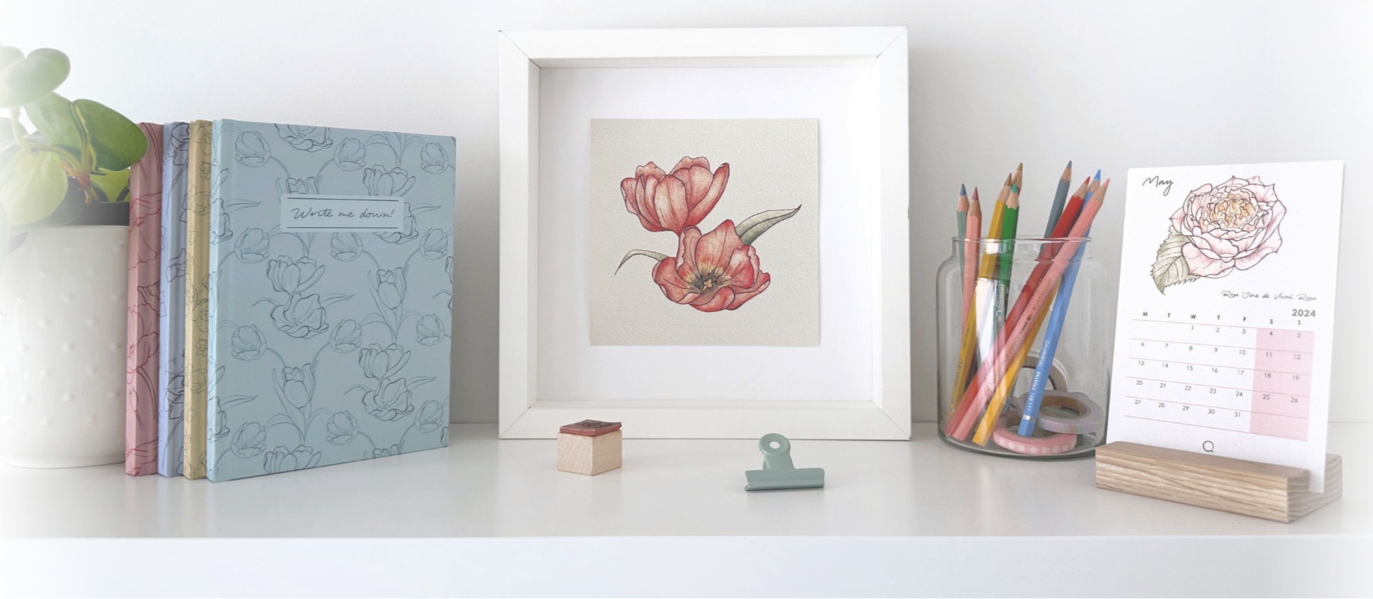 The Timeless Floral Collection celebrates the quiet beauty of the seasons with matching journals, calendars, tote bags, greeting cards and wrapping paper. Designed to bring calm, order, and a touch of nature to your everyday, each piece is part of a thoughtful, coordinated set, perfect for gifting or creating a serene, personal space.
